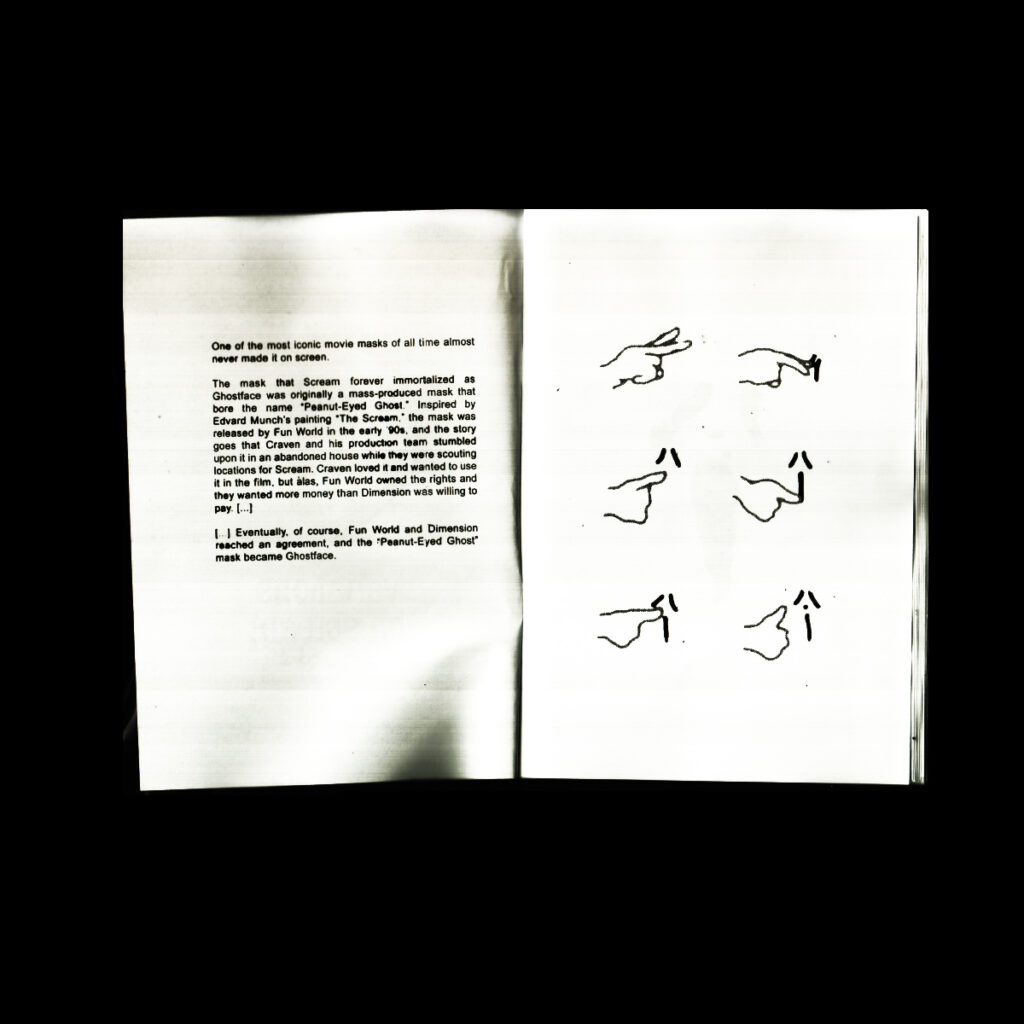 Hand-drawn variations of the Ghosface maks from the 1996 Wes Craven’s movie “Scream” made with one gesture.